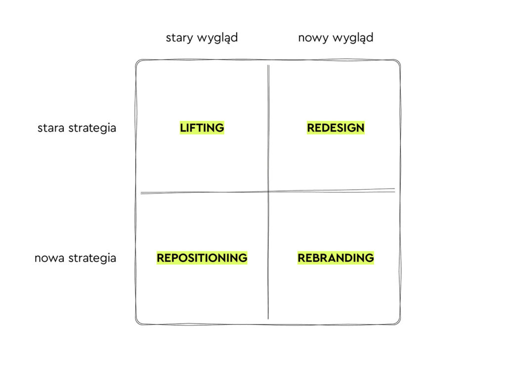 Te 4 scenariusze to: Lifting, Redesign, Repozycjonowanie i pełny Rebranding.