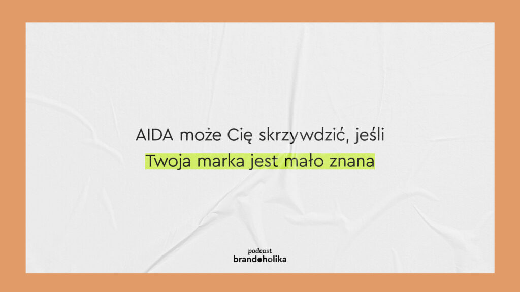Jeśli nie masz marki FMCG, to AIDA może cię skrzywdzić. Ale AIDA może też cię skrzywdzić, jeśli budujesz markę nową, świeżą i nieznaną. Zwróćcie uwagę, że większość teorii marketingowych i przykładów takich AIDowych mówi o markach, które wszyscy znają. To znaczy, nie wiem, Milka, Coca-Cola, wiecie, wszystkie te brandy, które my już kojarzymy i znamy, które funkcjonują wokół nas.