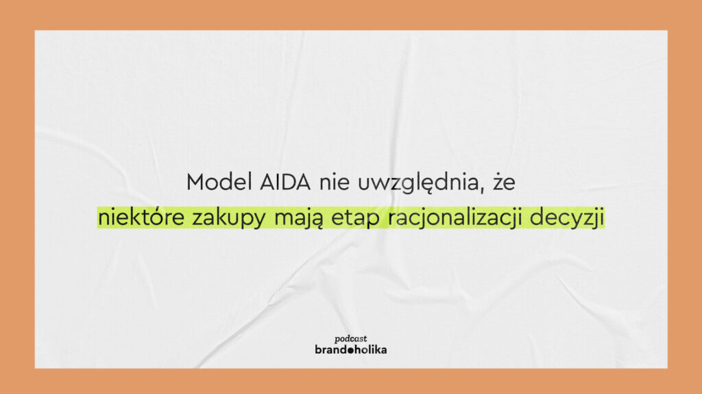 W takich przypadkach model AIDA może się sprawdzać – wzbudzenie pożądania, zrobienie takiego atrakcyjnego opakowania naszego produktu może zadziałać, bo tam nie ma tego elementu zawahania. W tej ścieżce AIDA, jak wzbudzimy pożądanie, to od razu jest akcja i jest zakup.